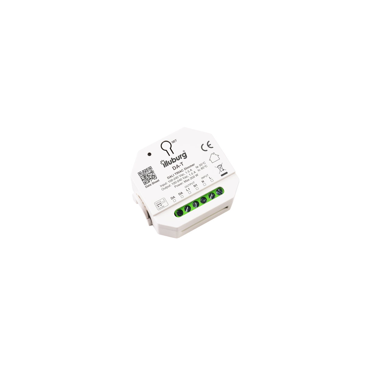 DIMMER DA-T: regulates dimmable LEDs and TRIAC (leading edge and trailing edge) dimmable transformers with DALI and PUSH signal, dimming range 0 to 100%.