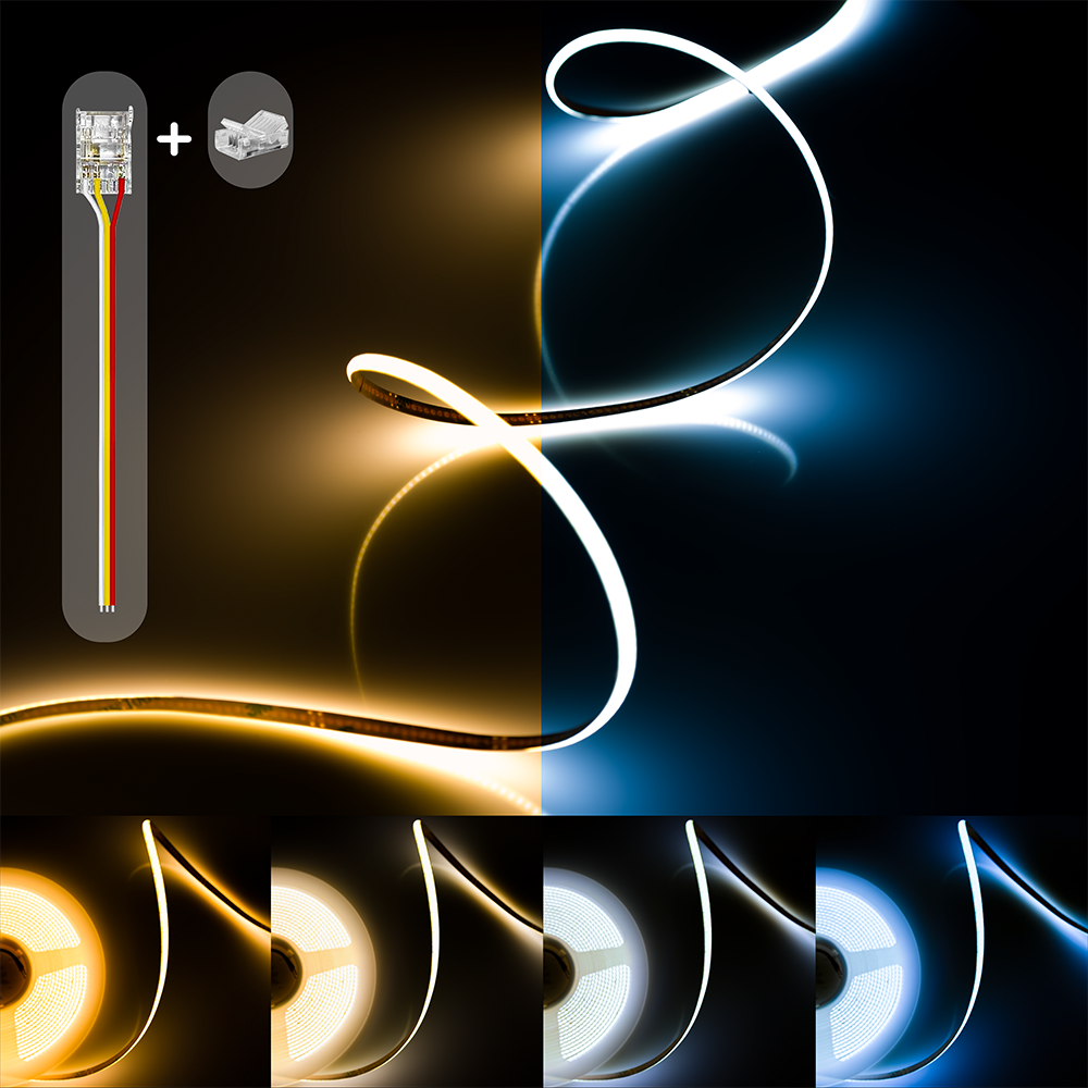 LED Strip C8-576B-CCT5: 24 V constant voltage flexible COB LED strip, 2700 – 6500 K CCT colour temperature adjustable, 2880 LEDs (576 LEDs/m), 5 metres.