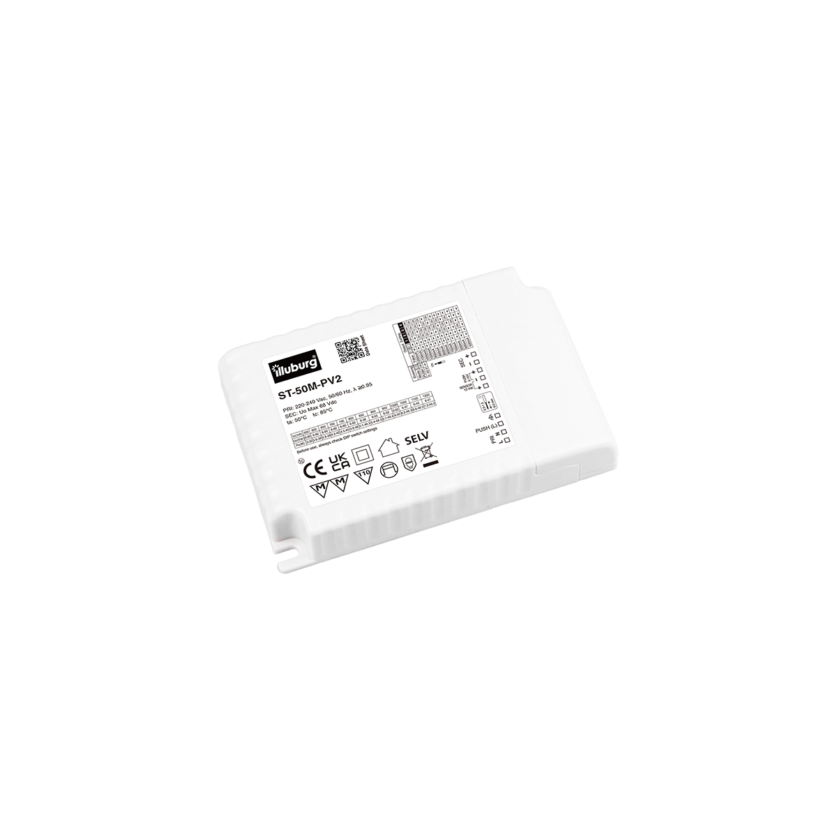 LED-Netzteil ST-50M-PV: LED Trafo mit Multi-Ausgang, Eingang 220 – 240 V (AC), Ausgang 6 – 60 V (DC), Taster (Primär, Secondär) dimmbar, unabhängige Installation.