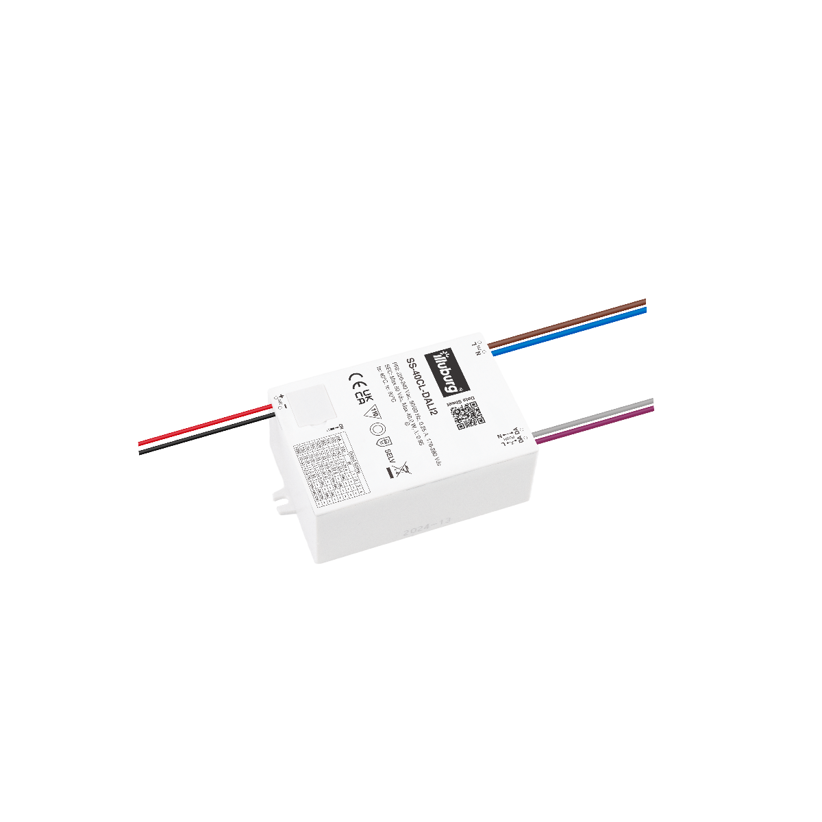 LED-TREIBER SS-40CL-DALI2: Eingang 220 – 240 V (AC), Ausgang 700 – 1200 mA Kosntantstrom, dimmbar, Einbau-Installation.