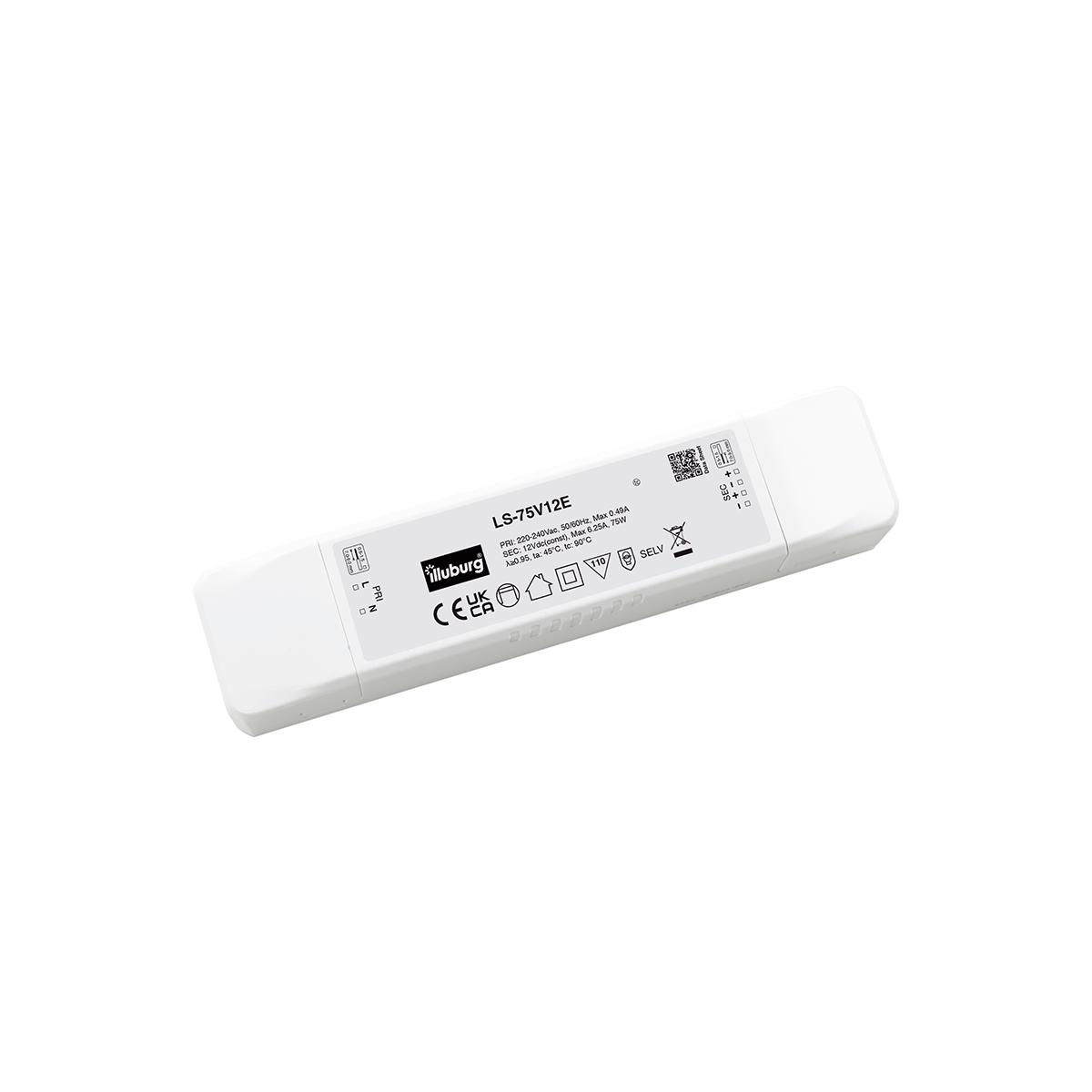 LED-Netzteil LS-75V12S: LED Trafo Konstantpannung, Eingang 220 – 240 V (AC), Ausgang 12 V (DC), nicht dimmbar, unabhängige Installation.