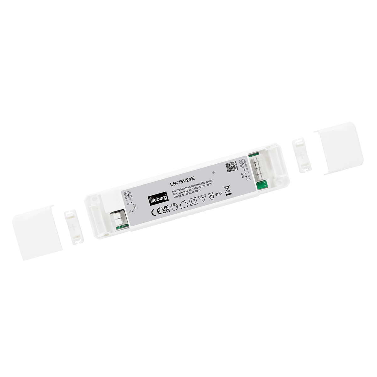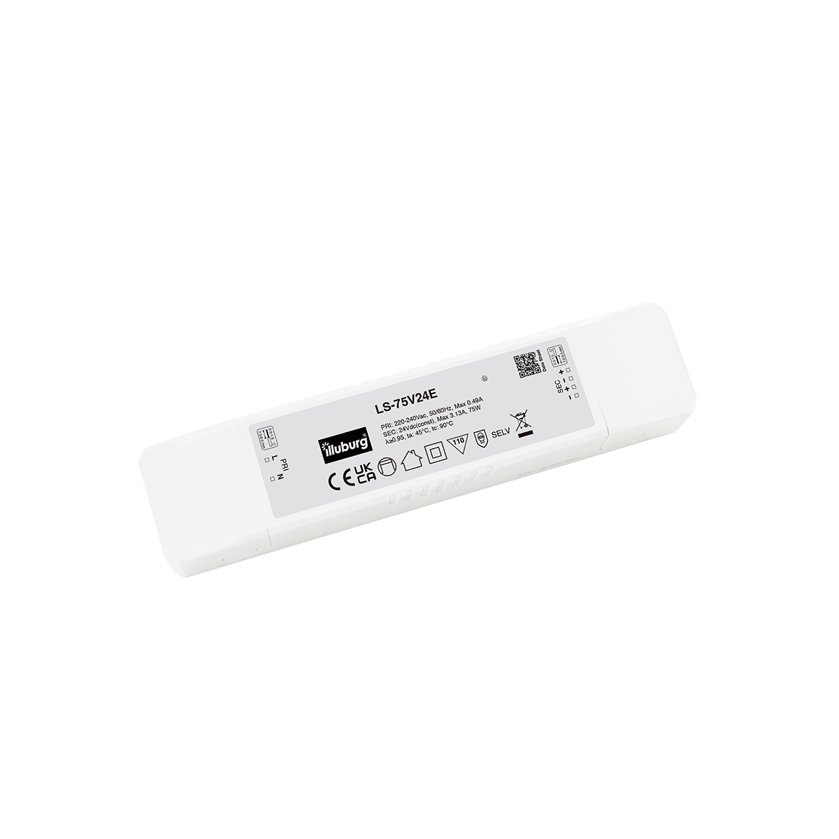 LED-Netzteil LS-75V24: LED Trafo Konstantpannung, Eingang 220 – 240 V (AC), Ausgang 24 V (DC), nicht dimmbar, unabhängige Installation.