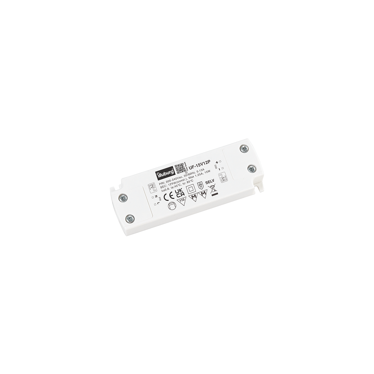 LED-Netzteil UF-15V12: LED Trafo Konstantpannung, Eingang 220 – 240 V (AC), Ausgang 12 V (DC), nicht dimmbar, flackerfrei, unabhängige Installation.