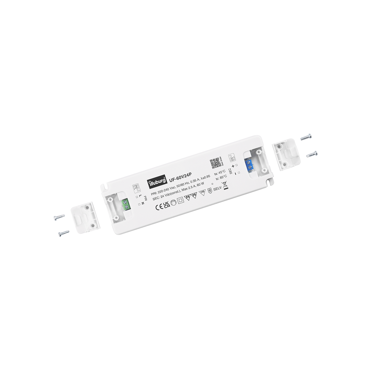 LED-Netzteil UF-60V24: LED Trafo Konstantpannung, Eingang 220 – 240 V (AC), Ausgang 24 V (DC), nicht dimmbar, flackerfrei, unabhängige Installation.