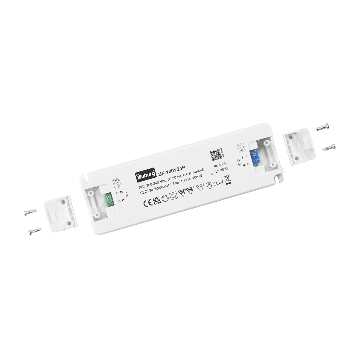 LED-Netzteil UF-100V24: LED Trafo Konstantpannung, Eingang 220 – 240 V (AC), Ausgang 24 V (DC), nicht dimmbar, flackerfrei, unabhängige Installation.