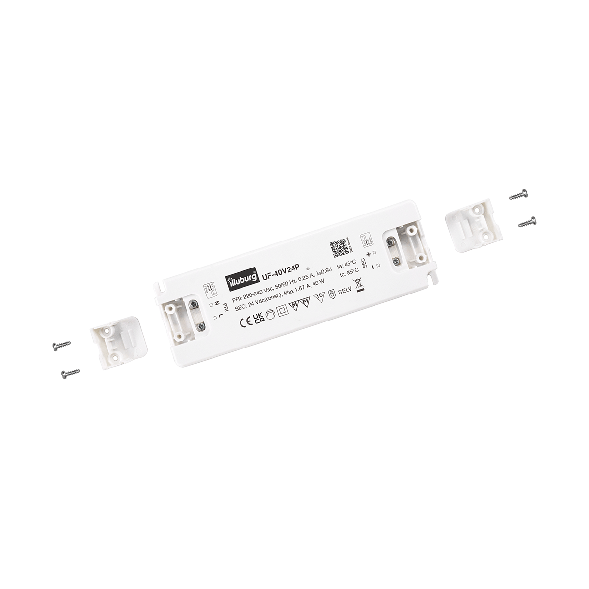 LED-Netzteil UF-40V24: LED Trafo Konstantpannung, Eingang 220 – 240 V (AC), Ausgang 24 V (DC), nicht dimmbar, flackerfrei, unabhängige Installation.