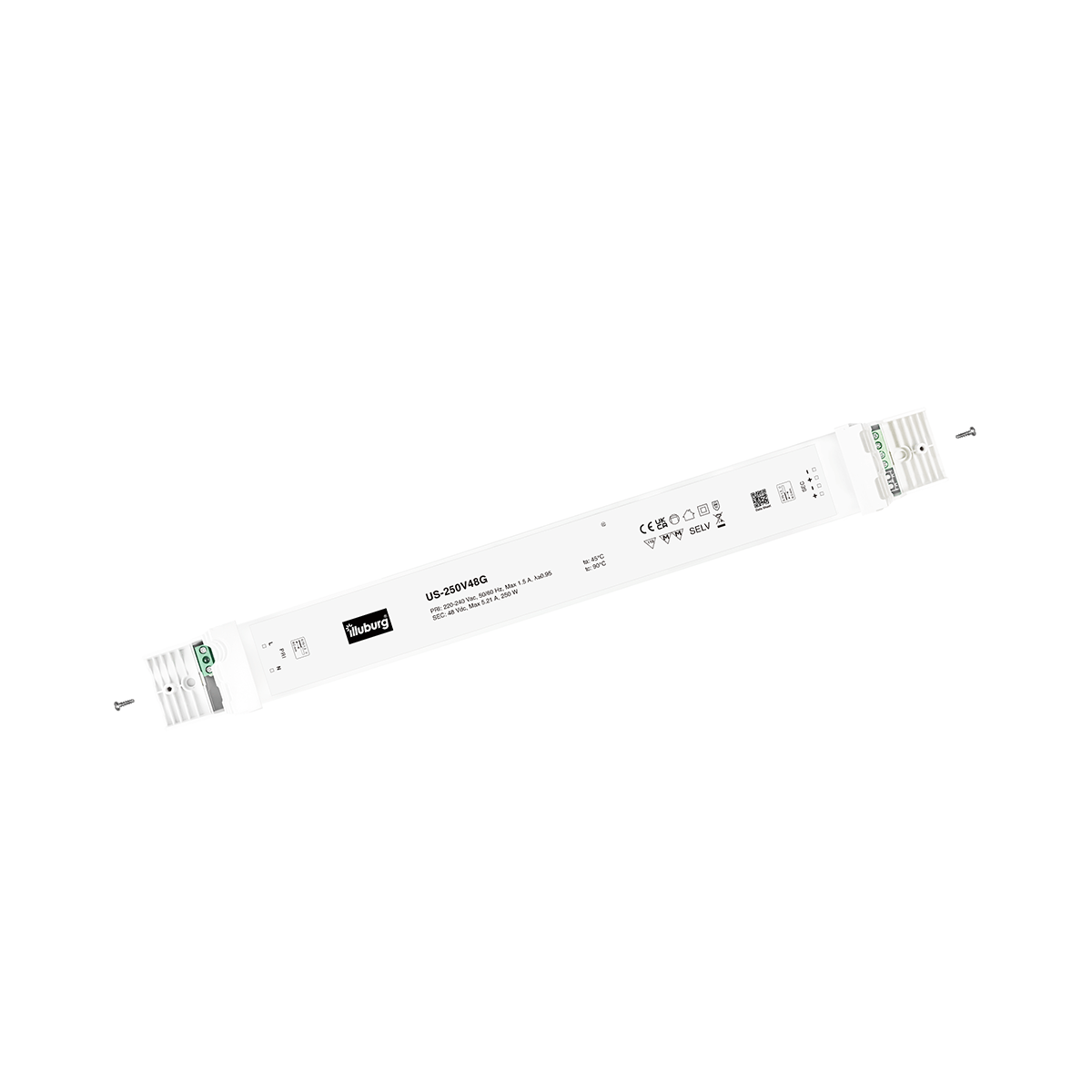 LED-Netzteil US-250V48G: LED Trafo Konstantpannung, Eingang 220 – 240 V (AC), Ausgang 48 V (DC), nicht dimmbar, unabhängige Installation.
