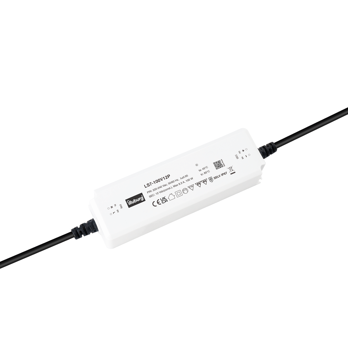 LED-Netzteil LS7-100V12P: LED Trafo Konstantpannung, Eingang 180 – 264 V (AC), Ausgang 12 V (DC), nicht dimmbar, Einbau-Installation.