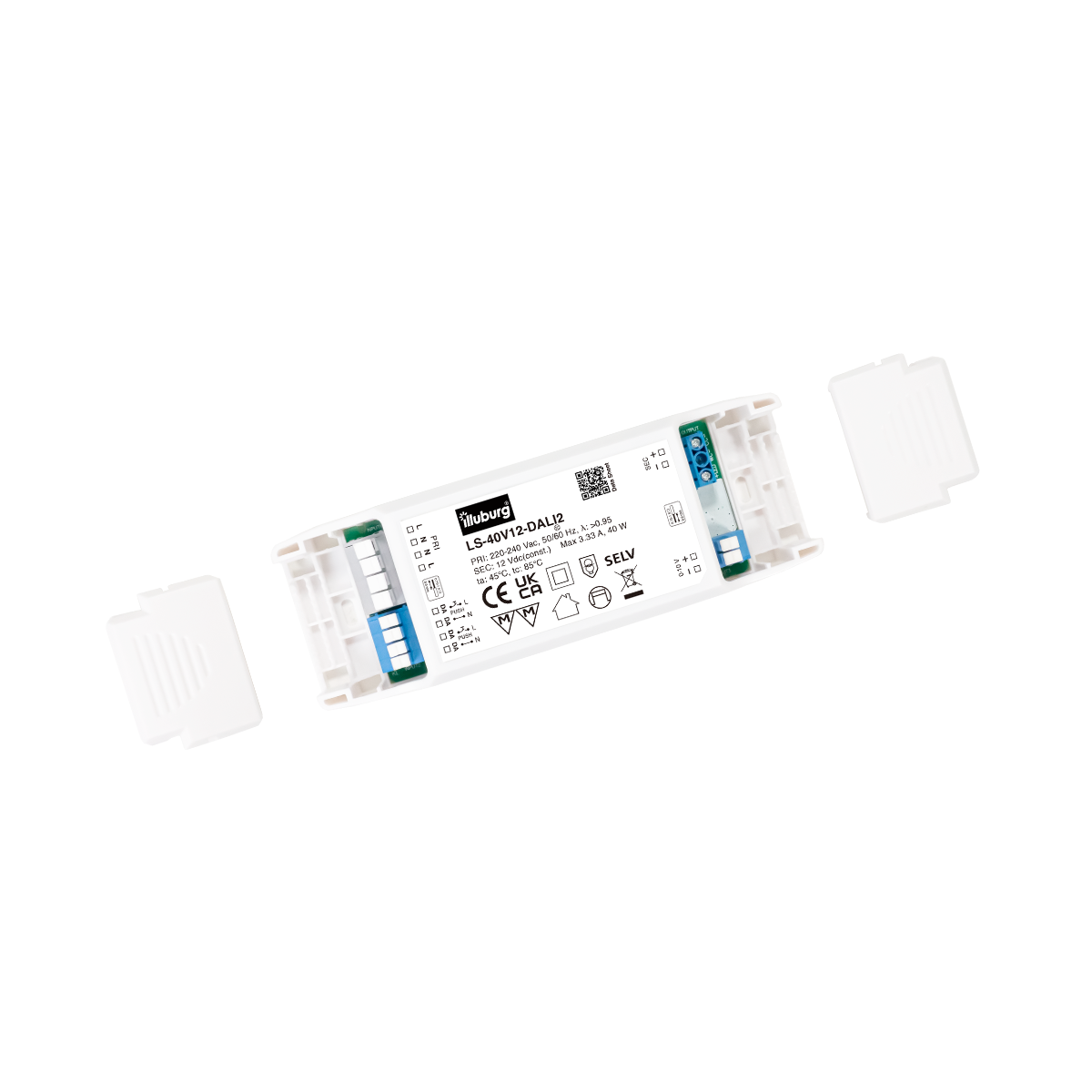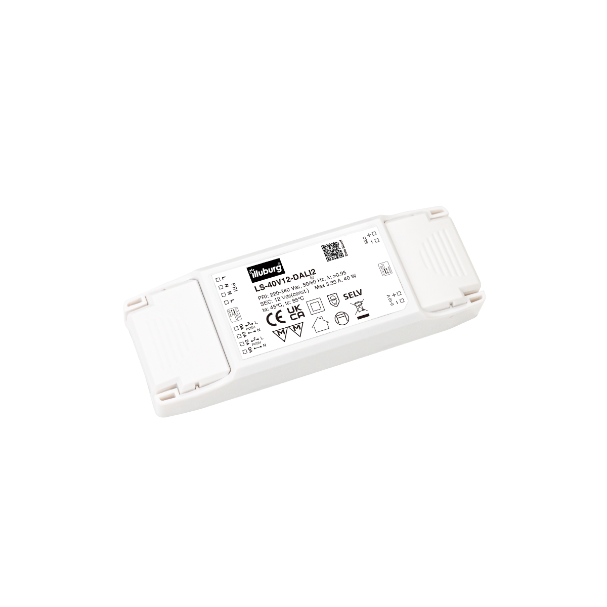 LED-Netzteil LS-40V12-DALI2: LED Trafo Konstantpannung, Eingang 220 – 240 V (AC), Ausgang 12 V (DC), dimmbar mit DALI2, PUSH(pri.), 0-10V (sec.), flackerfrei, unabhängige Installation.