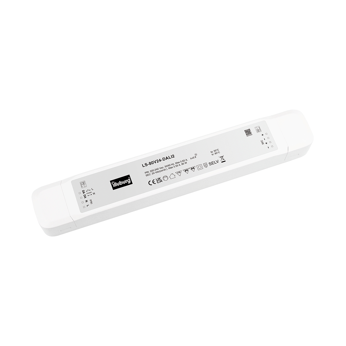 LED-Netzteil LS-80V24 DALI2: LED Trafo Konstantpannung, Eingang 220 – 240 V (AC), Ausgang 24 V (DC), dimmbar, flackerfrei, unabhängige Installation.
