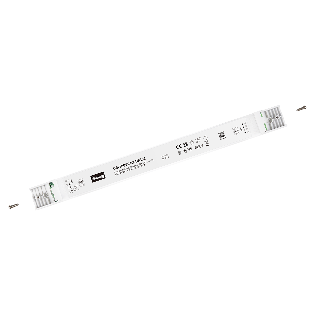LED-Netzteil US-100V24-DALI2: LED Trafo Konstantpannung, Eingang 220 – 240 V (AC), Ausgang 24 V (DC), dimmbar mit DALI2, PUSH(pri.), flackerfrei, unabhängige Installation.