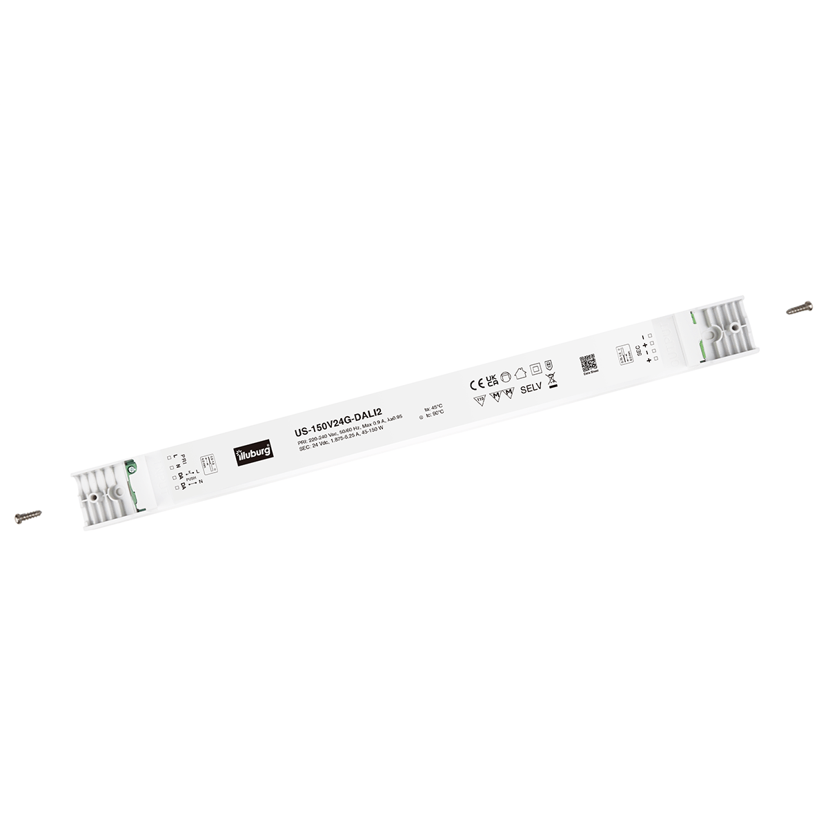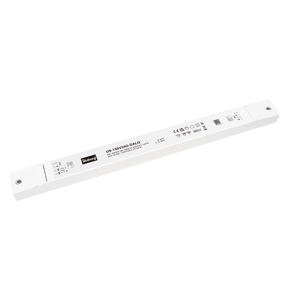 LED-Netzteil US-150V24G-DALI2: LED Trafo Konstantpannung, Eingang 220 – 240 V (AC), Ausgang 24 V (DC), dimmbar mit DALI2, PUSH(pri.), flackerfrei, unabhängige Installation.