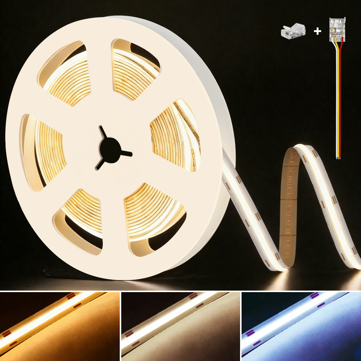 LED Strip C8-576B-CCT10: 24 V Konstantspannung flexibler COB LED-Streifen, 2700 – 6500 K CCT Farbtemperatur einstellbar, 5760 LEDs (576 LEDs/m), 10 Meter.