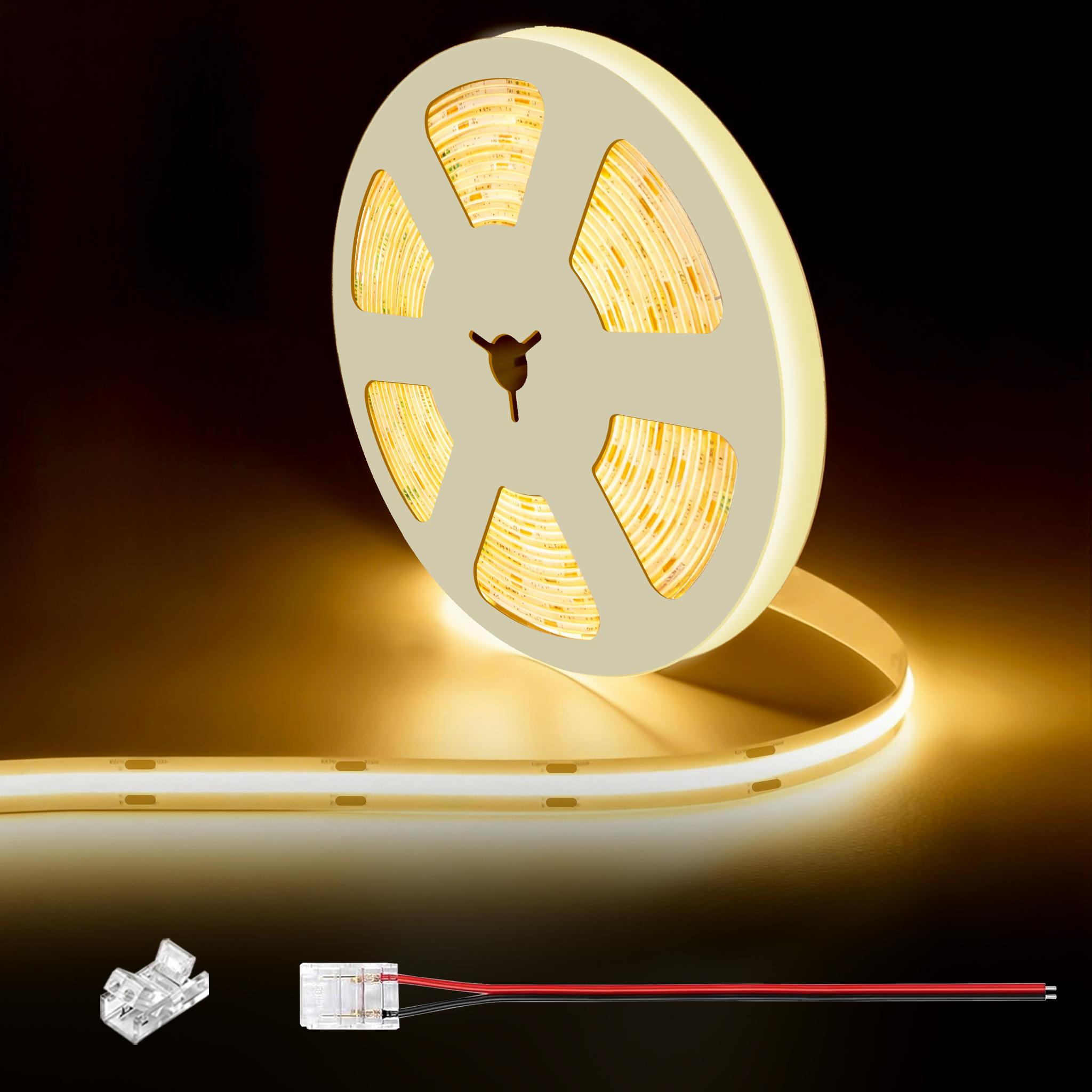 LED Strip C10-528A-WW5: 12 V Konstantspannung flexibler COB LED-Streifen, 2700 K Warmweiß, 2640 LEDs (528 LEDs/m), 5 Meter.